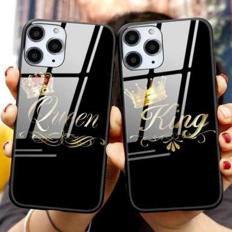Пара Королева Король Корона Бриллиант Закаленное стекло Чехол для телефона для iPhone 13 12 11 SE 20